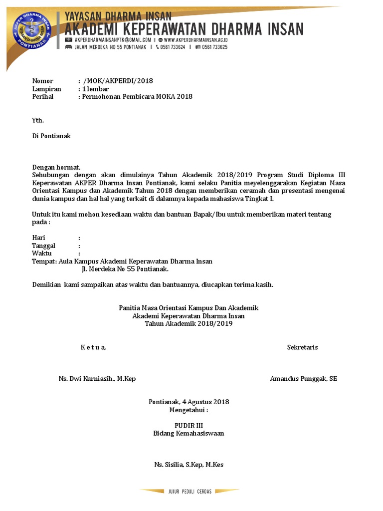 Simpan simpan contoh surat permohonan narasumber untuk nanti. Agar lebih jelasnya berikut ini terdapat contoh surat undangan untuk menjadi pembicara dalam acara motivasi. Contoh permohonan surat pembicara seminar keynote nasional mahasiswa. Untuk mengundang seorang pembicara maka kita perlu menyampaikan surat undangan untuk menjadi pembicara secara baik. Contoh surat permohonan menjadi pemateri pembicara acara seminar itulah surat permohonan sebagai pembicara dalam seminar yang dapat admin kumpulkan. Surat undangan menjadi pembicara perlu dibuat sebaik baiknya agar pihak yang diminta bersedia merespon dengan baik pula.