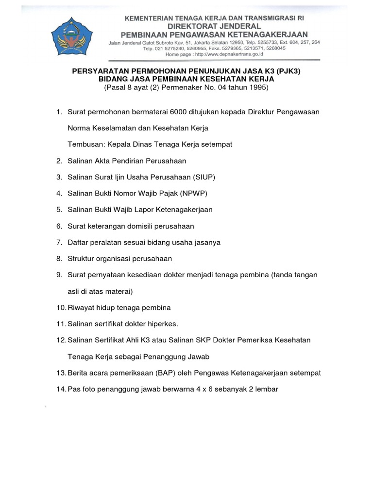 Serta jangan lupa materai untuk kita tempelkan dalam surat permohonan ini karena surat permohonan ini dianggap sah jika ditanda tangani diatas materai oleh direktur atau pemilik usaha. Ayat 1 pjk3 harus mengajukan surat permohonan perpanjangan dengan melampirkan syarat syarat sebagaimana dimaksud dalam pasal 8 ayat 2 dan daftar kegiatan selama berlakunya keputusan penunjukan. 3 pengajuan permohonan perpanjangan pjk3 sebagaimana dimaksud dalam ayat 2 harus. Contoh surat pengajuan tim p2k3 perusahaan dengan hormat sehubungan dengan penerapan sistem manajemen keselamatan dan kesehatan kerja smk3 sesuai peraturan pemerintah ri no 50 tahun 2012 dan menindaklanjuti undang undang no 1 tahun 1970 dan permanker no per 04men1987 maka bersama ini kami mangajukan permohonan pengesahan panitia pembina keselamatan dan kesehatan kerja p2k3 di perusahaan. Hal ini tidak lain dan tidak bukan disebabkan oleh teknologi yang sudah semakin canggih dan mempermudah manusia dalam berkomunikasi. Alhasil surat sebagai media komunikasi jadul inipun sudah semakin jarang digunakan.