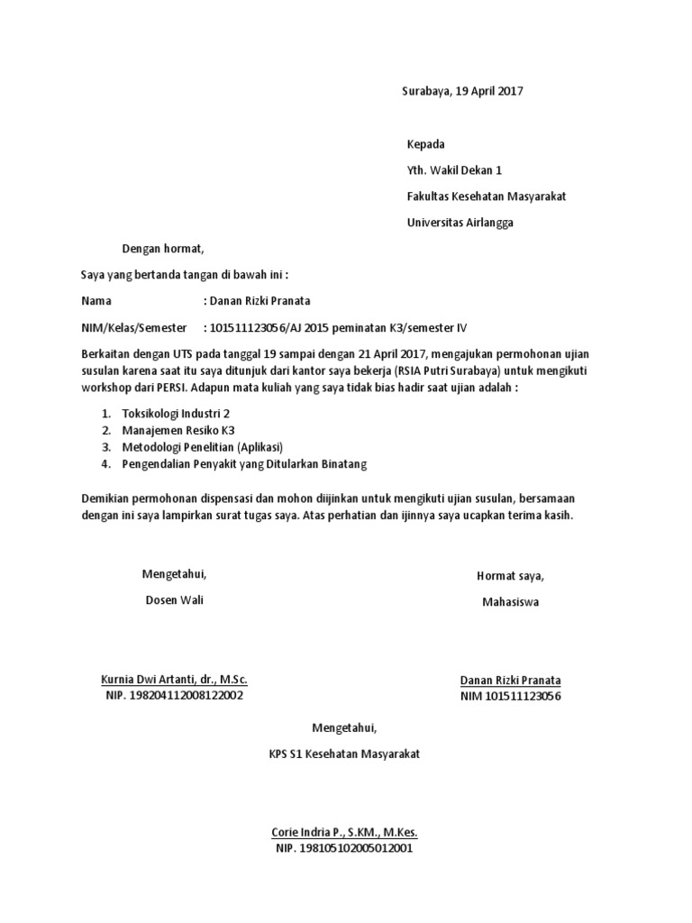 Kaprodi bapak abdul rahman saleh st msc. Saya membuat surat permohonan ujian susulan itu. Dengan hormat bersama surat ini saya n a m a. 16 juni 2015 1536 diperbarui. Pematangsiantar 15 mei 2013. Surat permohonan mengikuti ujian susulan jakarta 16 april 2012.