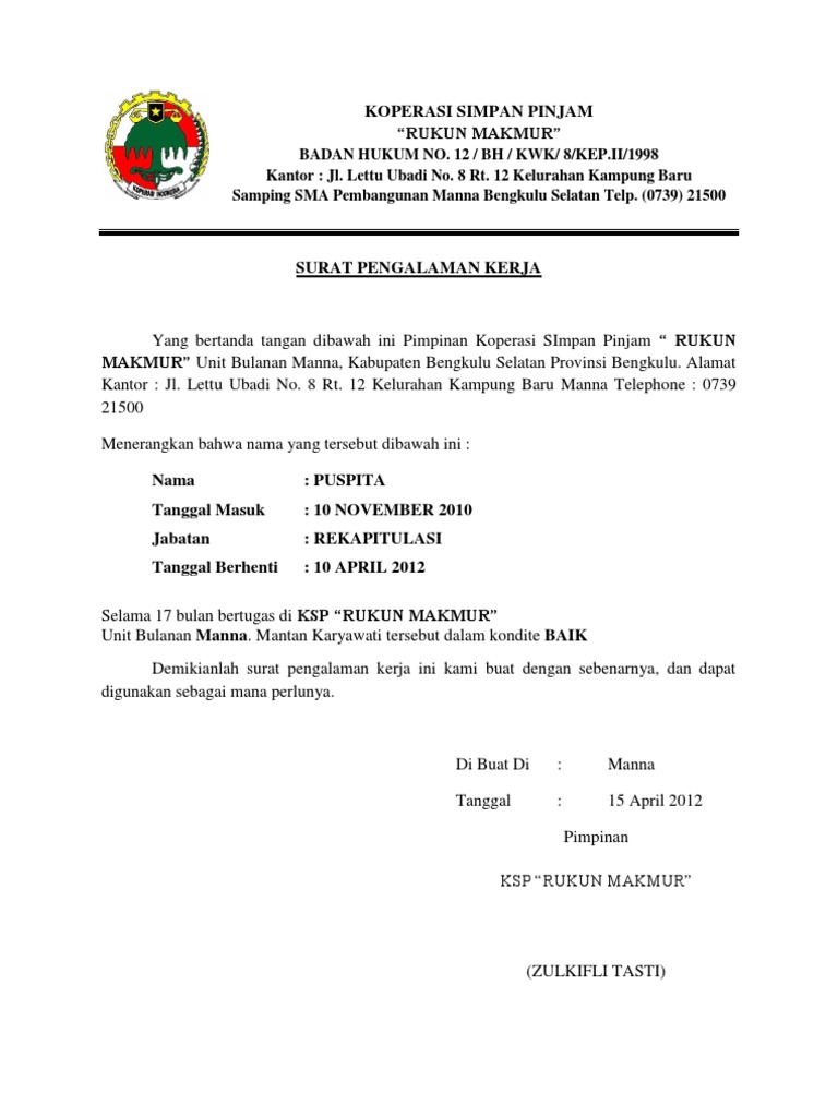 Contoh surat referensi pengalaman kerja. Tidak heran kalau kita harus bersaing dengan banyak orang demi mendapatkan sebuah pekerjaan yang kita inginkan atau kita lamar. Dengan demikian perusahaan tak perlu lagi membimbing mulai dari awal dalam. Akan lebih baik jika pengalaman kerja anda cocok dengan bidang pekerjaan yang anda lamar saat ini. Contoh surat referensi kerja dalam bahasa inggris dan artinya jika berbicara tentang surat referensi kerja maka hal pertama yang kita ingat adalah prestasi yang kita dapatkan selama bekerja di sebuah instansi atau perusahaan tempat kita bekerjasurat referensi ini kita butuhkan apabila kita ingin keluar dari suatu pekerjaan untuk alasan tertentu. Diberikan ketika ada karyawan yang resign mengundurkan diri dari perusahaan tersebut. Contoh surat referensi kerja di apotek contoh surat referensi kerj adalah surat referensi atau referensi yang menjelaskan bahwa pelamar sudah memiliki pengalaman kerja di bidang tertentu.