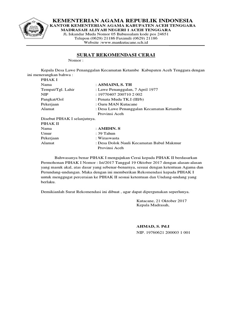 Contoh surat rekomendasi cerai pns have a graphic from the othercontoh surat rekomendasi cerai pns in addition it will include a picture of a sort that might be seen in the gallery of contoh surat rekomendasi cerai pns. Contoh di bawah ini sebenarnya bukan mengandung makna untuk mendoakan aipapun untuk melakukan keputusan ini loh ya.