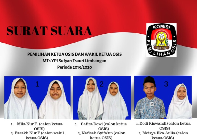 Contoh surat suara pemilihan ketua osis. Surat suara pemilu ketua wakil ketua osis 23 agu jenjang pendidikan smpmts dan smamasmk tentunya memiliki organisasi intra sekolah yang disebut dengan osis dan osis ini tentunya diketuai oleh ketua dan wakil ketua osis dan setiap tahun ajaran baru pasti akan dipilih kepengurusan osis yang baru. Wb sebagai rasa penghargaan sobat admin minta tolong untuk mengklik salah satu atau beberapa sponsor di bawah ini. Surat suara yang digunakan dalam pemilihan ketua osis smk informatika sumedang tahun 2013 by أرينالدي in types instruction manuals surat surat suara osis smk sma smp informatika teknologi ket. Pelaksanaan pemilihan ketua dan wakil ketua osis. Contoh surat lamaran kerja dan daftar riwayat hidu. Jlraya cirendang cigugur kuningan 45518.
