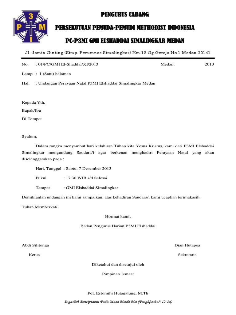 Contoh surat undangan natal untuk hari natal memang harus dirayakan dengan sangat ramai sekali di rumah dan mengundang semua tema kerabat dan tetangga sehingga perayaan natal semakin updol dan ini akan menjadi salah satu perayaan yang sangat meriah selama hidup anda dan lakukan hal terbaik untuk hari natal tersebut. Kali ini saya akan bagikan contoh kartu undangan yang biasa gereja saya lakukan untuk mengundang gereja sekitar. Panitia perayaan natal pemuda gkps helvetia resort medan barat tahun 2012. Contoh surat undangan surat undangan merupakan surat yang memberitahukan mengajak suatu permintaan atau permohonan kepada pihak lain untuk datang menghadiri acara atau kegiatan yang dilakukan oleh si pengirim surat. Ketika ingin menyelenggarakan acara perayaan natal maka tentu dibutuhkan persiapan yang matang. Tertib acara perayaan natal pemuda gkpi sampali 2013.
