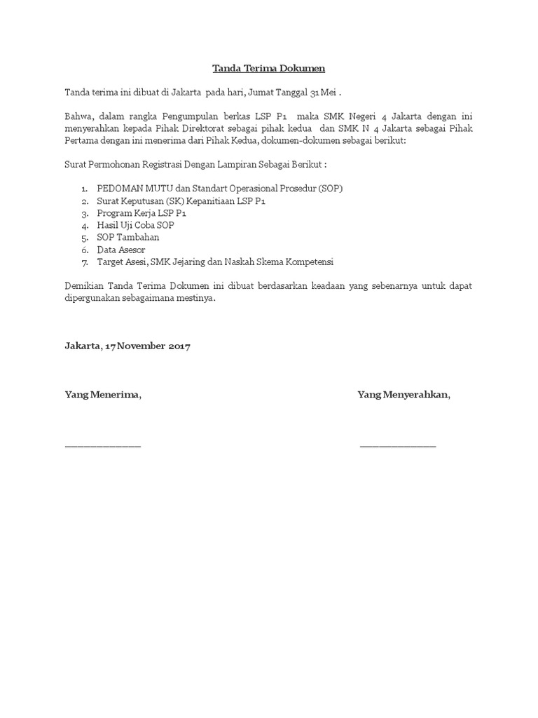 Tanda terima tersebut bisa berupa apa saja yang paling sederhana adalah nota. Download contoh surat tanda terima dokumen doc. Semoga dengan penjelasan tadi membuat anda lebih paham lagi tentang surat tanda terima. Tanda terima dokumen tanda terima ini dibuat di jakarta pada hari jumat tanggal 31 mei. Nah itu tadi penjelasan singkat mengenai contoh surat tanda terima. Kita akan sambung lagi dengan penjelasan tentang jenis surat yang lain.