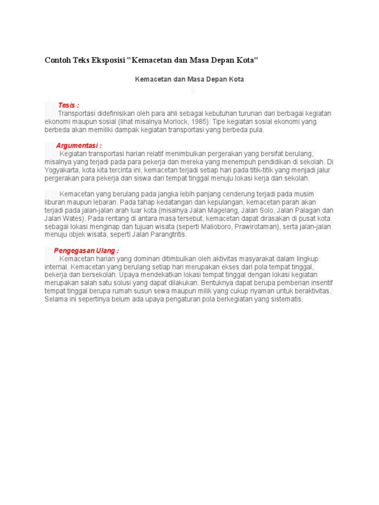 Oleh dosenpendidikan diposting pada 08072020. Seperti yang kita ketahui bersama bahwa pengertian teks eksposisi adalah sebuah karangan atau paragraf yang memiliki kandungan berupa informasi atau pengetahuan yang mencoba. Paragraf eksposisi adalah sebuah paragraf yang mengadung penjelasan explanation informasi information atau juga pengetahuan yang berkaitan pada topik yang. Transportasi didefinisikan oleh para ahli sebagai kebutuhan turunan dari berbagai kegiatan ekonomi maupun sosial lihat misalnya morlock 1985. Contoh teks eksposisi teks eksposisi merupakan suatu tulisan yang berisi fakta atau informasi berbentuk pengembangan paragraf yang berupaya untuk menerangkan suatu keadaan tertentu sehingga orang yang membacanya mendapatkan pengetahuan dari apa yang diuraikan oleh penulis. Kemacetan dan masa depan kota.
