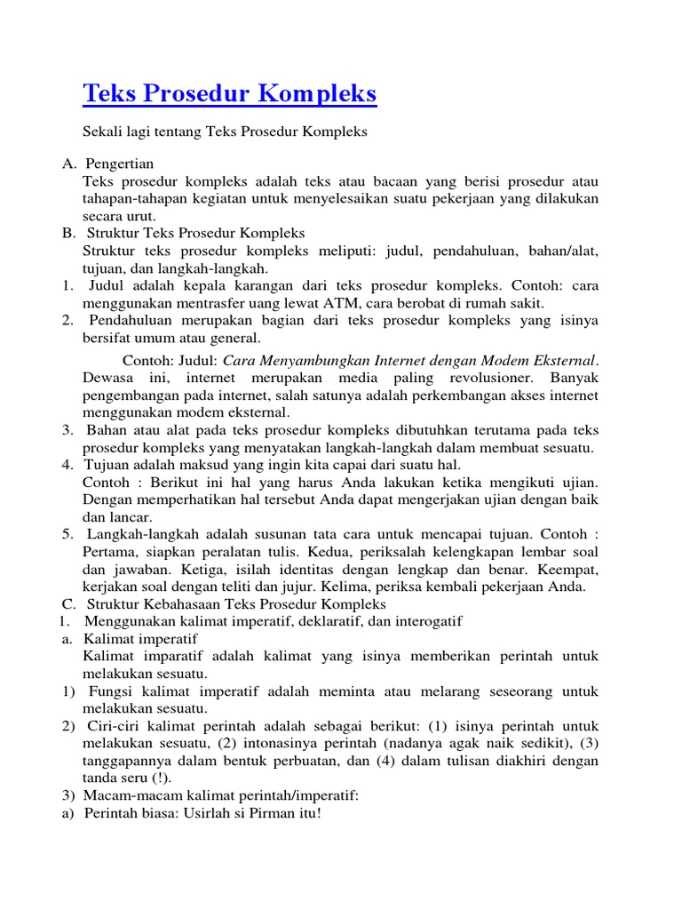 Contoh teks prosedur lengkap dengan strukturnya. Getuk lindri banyak disukai oleh semua kalangan. Contoh teks prosedur kiat berwawancara kerja beserta strukturnya contoh teks prosedur cara mendirikan tenda kemah teks prosedur adalah teks yang berisi cara tujuan untuk membuat atau melakukan sesuatu hal dengan langkah demi langkah yang tepat secara berurutan sehingga menghasilkan suatu tujuan yang diinginkan. Misalnya jika memasak mie instan kita bisa merebus dengan memasukan mie dan bumbu kedalam air rebusan dari tungku atau bisa memasukan air panas kedalam wadah yang berisi mie lalu memasukan bumbu. Dan simak contoh teks prosedur dengan strukturnya berikut ini. Pengertian teks prosedur kompleks. Teks prosedur kompleks dapat diartikan sebagai karya tulis yang menunjukkan informasi mengenai langkah atau tahapan yang saling berhubungan untuk menyelesaikan.