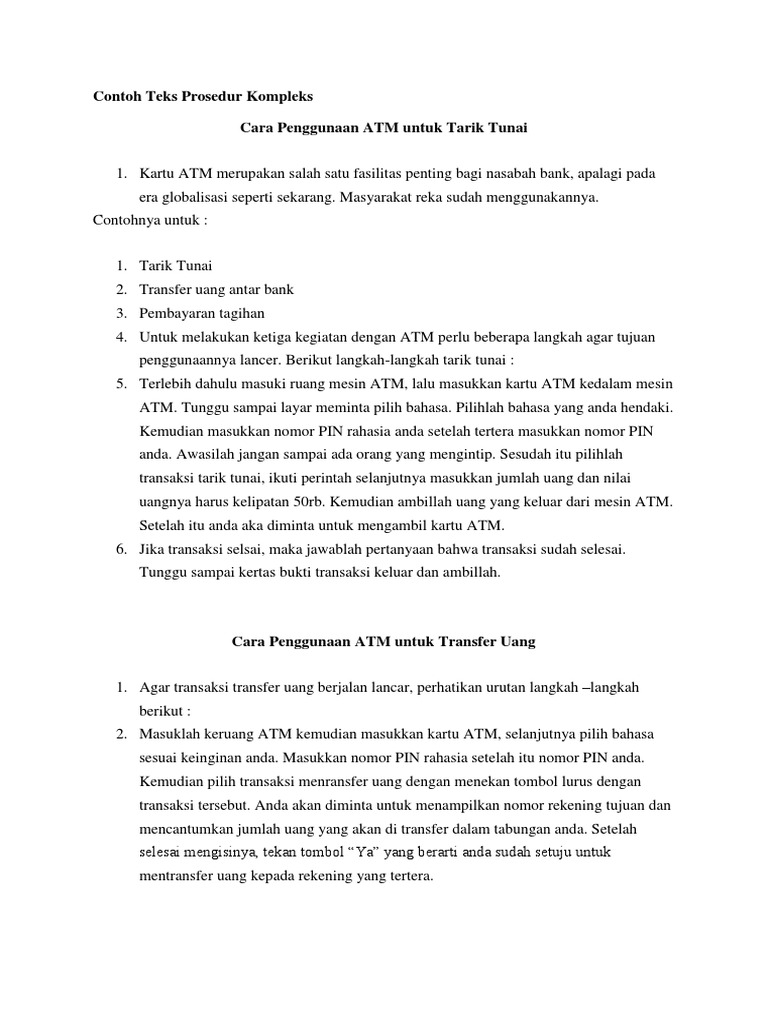 Contoh teks prosedur kompleks singkat sederhana protokol simple tentang membuat resep makanan minuman sesuatu kerajinan dll. Teks prosedur sederhana teks prosedur sederhana yaitu teks yang berisi langkah langkah sederhana yang biasaya hanya 2 4 langkah saja dalam melakukannya contohnya cara login facebook. 22 contoh teks prosedur sederhana kompleks dan protokol untuk pembahasan kali ini kami akan memberikan ulasan mengenai contoh teks prosedur yang dimana dalam hal ini meliputi contoh teks prosedur sederhana kompleks dan protokol nah agar lebih dapat memahami dan mengerti simak ulasan selengkapnya dibawah ini. Teks prosedur protokol merupakan teks prosedur yang langkah langkahnya tidak terlalu rumit atau sulit akan tetapi sangat mudah untuk dipahami. Teks prosedur protokol adalah teks yang pada setiap langkahnya bisa diubah tidak harus runut walaupun berubah tetapi hasil akhirnya tetap sama. Misalnya jika memasak mie instan kita bisa merebus dengan memasukan mie dan bumbu kedalam air rebusan dari tungku atau bisa memasukan air panas kedalam wadah yang berisi mie lalu memasukan bumbu.