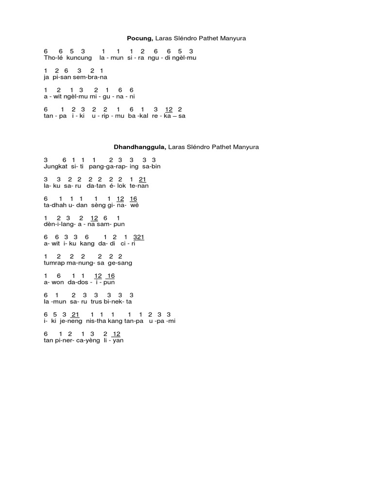 Pucung biasa disebut juga dengan pocung. Berikut contoh tembang macapat pocung. Tembang ini selalu digunakan pada setiap acara penting yang diadakan orang jawa. Pucung menceritakan tentang kebebasan dan tindakan sesuka hati sehingga pucung berwatak atau biasa digunakan dalam suasana santai. Demikian pemaparan kami mengenai apa itu pengertian tembang macapat urutan sejarah makna dan berbagai contoh tembang macapat. Contoh tembang macapat pocung yang diambil dari erat wulangreh karya sri susuhunan pakubuwana iv raja surakarta.