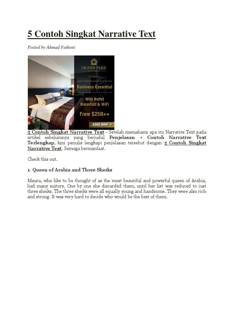 Narrative text dapat kita temukan pada saat sekolah smp kelas 8 dan 9 dan mungkin ada saat sekolah sma. 6 contoh narrative text singkat 3 paragraf dan arti kalau masih ingin tahu cerita fable tentang tingkah laku binatang yang diproyeksikan seperti manusia bisa membaca. Kalau sebelumnya pengertian lengkap dan contoh narrative text khususnya text narrative yang berbentuk legenda telah kita pelajari pada halaman ini giliran contoh narrative text example of narrative text dan terjemahannya yang lain yang akan kita bahas. Contoh narrative text singkat beserta artinya. Semoga juga bisa menambah wawasan anda mengenai contoh narrative text.