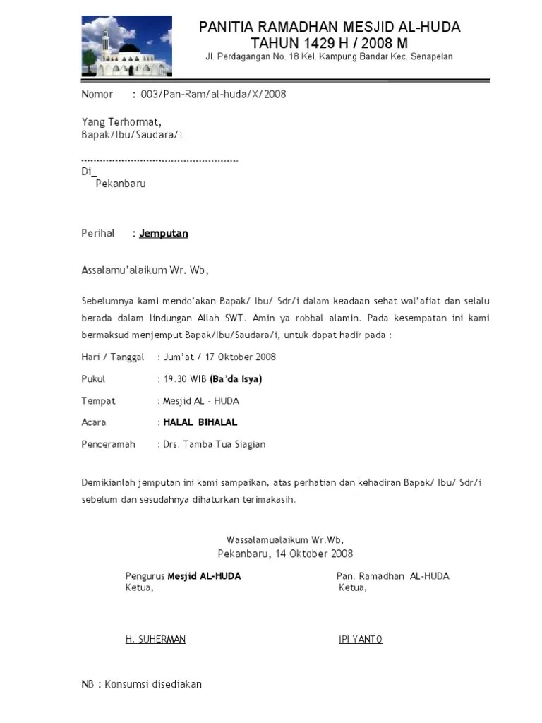 Ya tradisi unik yang selalu ada saat hari raya idul fitri tiba. Contoh surat undangan halal bihalal idul fitri sahabat folder contoh surat yang berbahagia.