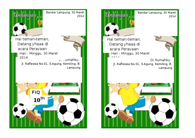 Undangan ulang tahun anak umur 3 tahun 4 tahun 5 tahun 6 tahun 7 tahun 8 tahun 9 tahun 10 tahun 11 tahun 12 tahun 13 tahun. Happy birthday sayang tak terasa kamu semakin dewasa semoga dengan bertambahnya usiamu semakin bertambah juga kebaikan dan kebahagiaanmu. Karena dengan undangan ini lah kita mengharapkan para tetangga teman saudara dan orang2 yang kita kenal untuk menghadiri acara ulang tahun anak kita. Nah desain contoh undangan ulang tahun anak laki laki tema sepak bola di atas bisa anda pakai untuk anak anda lhoo. Untuk anak usia 5 10 tahun. Untuk mengadakan acara ulang tahun tentu contoh undangan ulang tahun anak format ms.