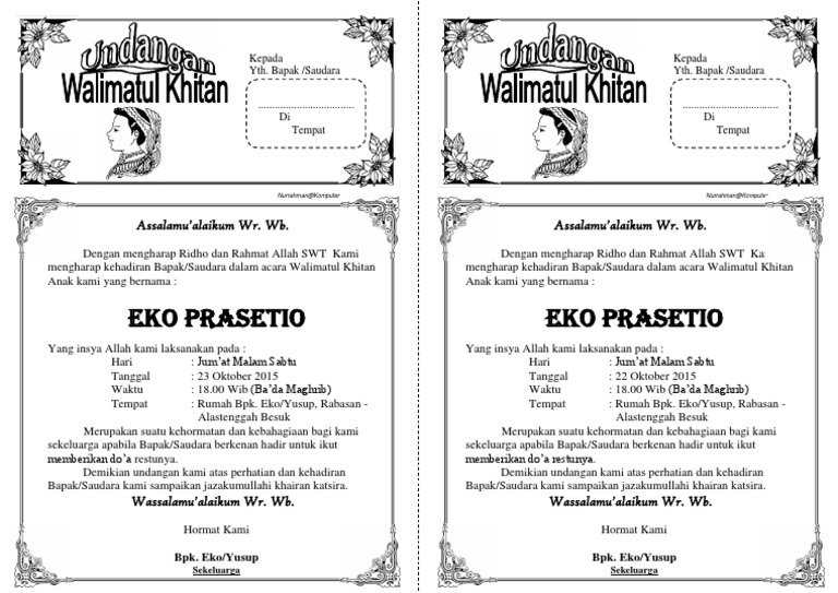 Contoh Undangan Walimatul Khitan Pdf Document