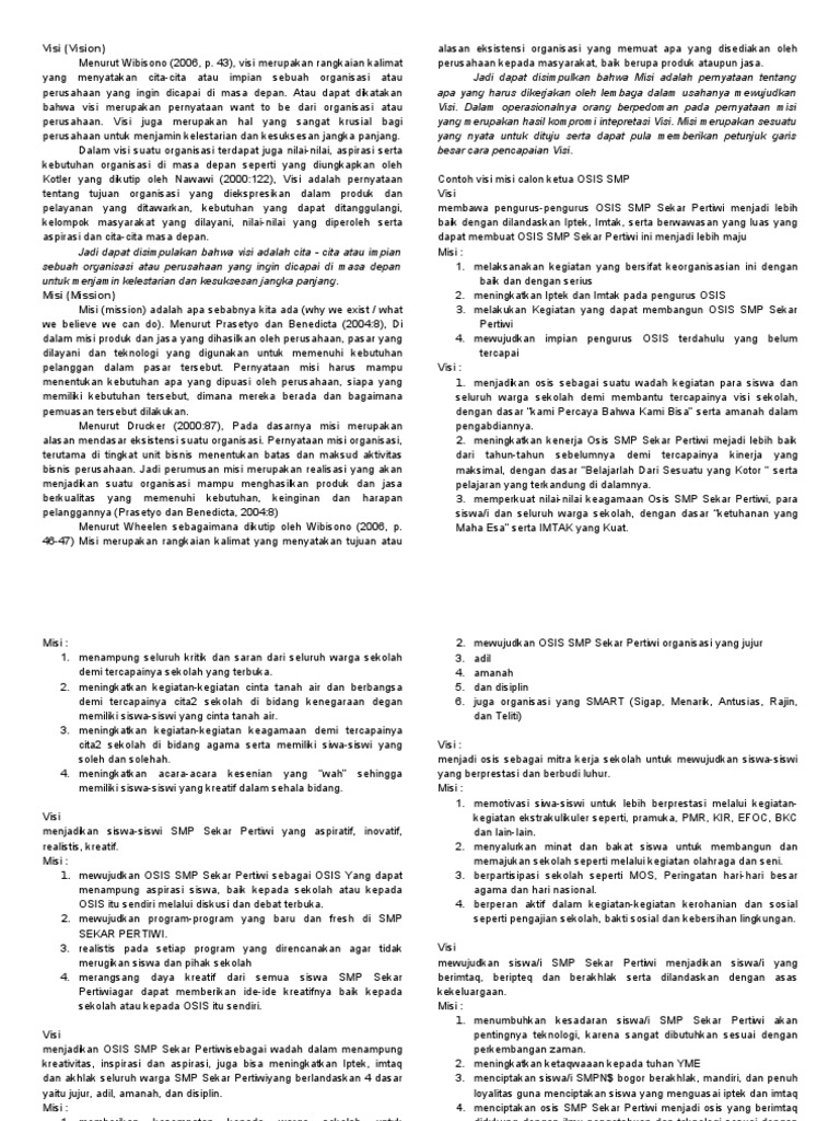Di sini kamu akan mendapat contoh kumpulan visi dan misi calon ketua osis smp sma dan smk yang menginspirasi. Menjadikan osis di sekolah nama sekolah yang progresif dinamis dan solid.