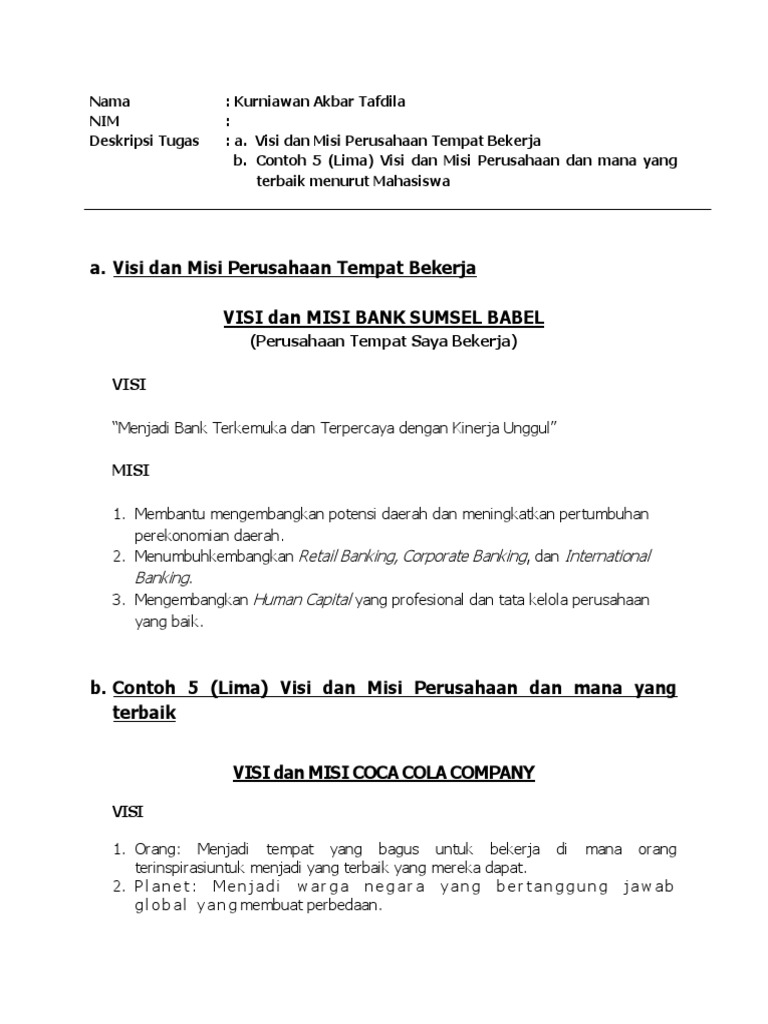 Contoh Visi Dan Misi Perusahaan Tumpi Id