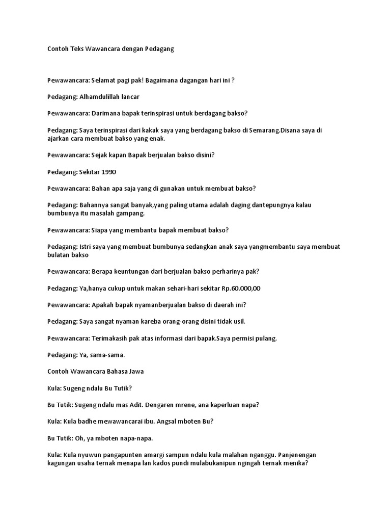 Contoh wawancara bahasa sunda ke pedagang. Tugas makalah bahasa sunda. Contoh laporan hasil wawancara laporan hasil wawancara adalah sebuah teks tertulis yang melaporkan suatu wawancara yang telah dilakukan baik itu wawancara dengan pedagang pengusaha guru ketua rt. Contoh wawancara dengan pedagang narasumber dari sebuah wawancara haruslah orang yang berkompeten dengan harapan informasi yang diberikan juga valid serta bisa dipercaya dan dipertanggungjawabkan. Conto makalah anu sae tangtuna nga bantu sim abdi sareng nu sejenna. Contoh wawancara dalam bahasa sunda dengan tukang cilok ini hasil referesi yang saya ambil dari tugas wawancara salah. Contoh laporan hasil wawancara singkat padat jelas contoh narasi wawancara dengan pedagang bahasa sunda contoh laporan hasil wawancara laporan hasil wawancara adalah sebuah teks tertulis yang melaporkan suatu wawancara yang telah dilakukan baik itu wawancara dengan pedagang pengusaha guru ketua rt atau narasumber lainnya nah sebelum ke contoh contoh laporan hasil wawancara alangkah baiknya.